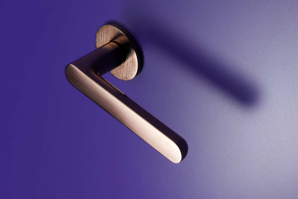 La maniglia ha un’estetica essenziale, neutra e funziona come una sorta di ‘passe-partout’, con un tocco di memoria ma allo stesso momento contemporanea e moderna.